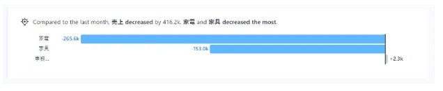 そして、左下に表示されている「Which カテゴリ decreased the most?」(どのカテゴリが一番減少している?)を選択します。